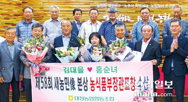 농협제주본부(본부장 윤재춘)는 대정농협 조합원인 김대을·홍순녀 부부가 농협중앙회가 선발하는 제58회 새농민상(像) 본상과 농림축산식품부장관 표창 수상자로 선정돼 지난 1일 시상식을 가졌다고 밝혔다.