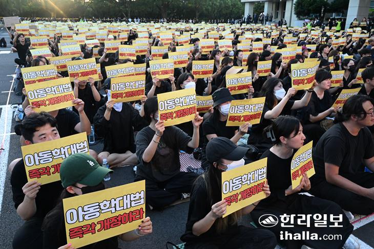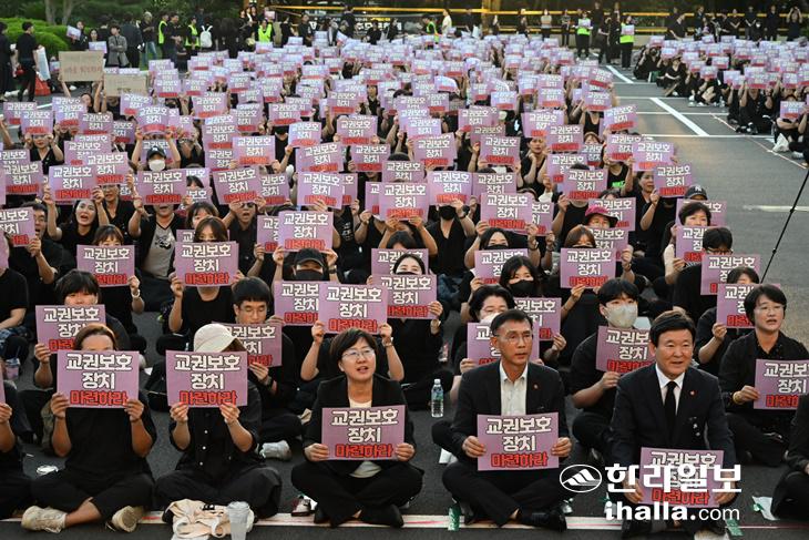 서울 모 초등학교 교사 사십구재인 4일 오후 6시30분부터 제주도교육청 앞마당에서 도내 6개 교육단체 등 '제주 교원 일동'이 주최·주관한 추모 문화제가 열리고 있다. 강희만기자