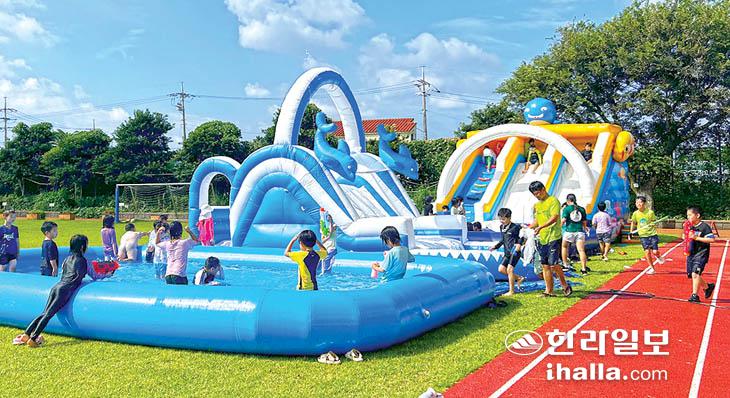 흥산초등학교는 지난 5일 교내 운동장에서 유치원과 전교생이 참석한 가운데 물놀이 활동을 실시했다.