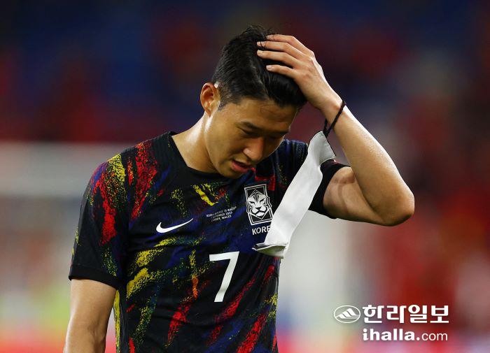 한국 남자 축구 대표팀은 8일(한국시간) 영국 웨일스의 카디프 시티 스타디움에서 열린 웨일스와 친선 경기에서 답답해 하는 손흥민. 연합뉴스