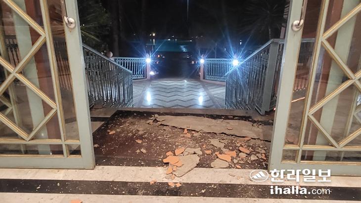 제주 대표단의 한 관계자는 "모로코 마라케시 현지시각 8일 오후 11시를 조금 지난 때였다. 제10차 세계지질공원 총회 제주 대표단이 투숙중이던 카스바 호텔에서는 파열음이 일었다"면서 "총회 일정을 오후 늦게까지 소화한 후 숙소 식당에서 저녁을 해결하고 잠자리에 든 지 채 2시간도 지나지 않은 시각. 갑자기 천정 등에서 굉음이 울리더니 여기저기에서 건물 잔해가 흩어졌다"고 당시 상황을 전했다.