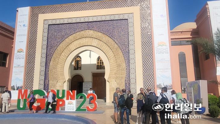 제주도 대표단이 묵었던 모로코 현지 숙소. 호텔 기둥이 무너져 있다. 사진=제주도 대표단