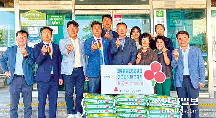 제주돌담로타리클럽(회장 문경한)은 지난 8일 제주시 한경면 지역사회보장협의체(공동위원장 김영일, 백여심)에 쌀 300㎏(100만원 상당)을 기탁했다. 제주돌담로타리클럽은 2021년 9월부터 지역사회보장협의체와 한경면 지역 내 취약계층을 지속적으로 지원하고 있다.