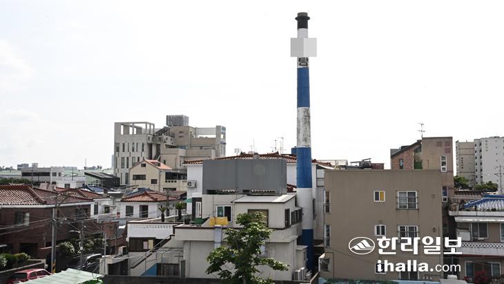 제주 도심 목욕탕의 원형 굴뚝. 이상국기자