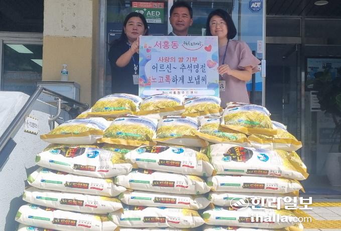 올해로 24년째 이름을 밝히지 않는 독지가가 추석을 앞두고 서귀포시 서홍동에 쌀을 기탁했다. 서홍동 제공