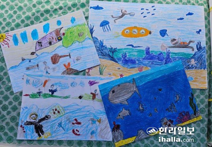 사계 용머리 해안일대에서 열린 제1회 제주바다그리기대회 참가자들의 작품. 오은지기자