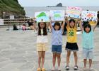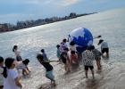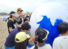 23일 오후 1시 제주시 이호동 이호테우해수욕장에서 참가자들이 지구본 칠하기 퍼포먼스를 하고 있다. 강다혜기자.