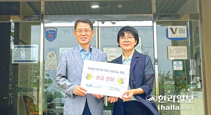 LX 한국국토정보공사 제주지역본부(본부장 이화영)는 민족 최대명절인 한가위를 앞둔 지난 19·20일, 제주시에 위치한 애서원·제광원관을 방문해 'LX 사랑나눔 행사'을 진행했다. 이화영 본부장은 직접 기관들을 방문해 사회적 약자에게 따뜻한 손길을 건네는 봉사자들에게 감사의 인사를 전하고, 100만원씩의 성금을 전달했다.