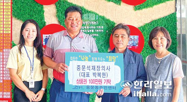 서귀포의료원(원장 박현수)은 원장 재임명을 기념해 지난 22일 서홍동주민센터(동장 김영철)에 쌀(10kg) 50포를 기탁했다. 중문석재장의사(대표 박복현)는 지난 20일 중문동주민센터(동장 김영범)에 상품권 100만 원을 기탁했다.