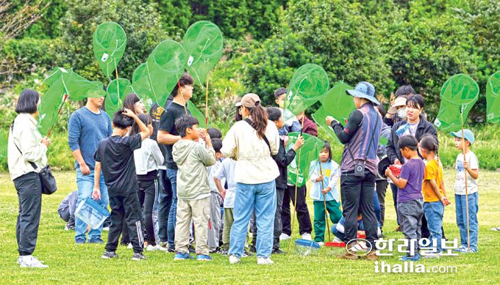 3일 서귀포시 성산읍 수산리 제주자연생태공원에서 추석맞이 가족과 함께하는 가을곤충체험에 참가한 어린이들이 즐거운 체험 활동을 하고 있다. 강희만기자
