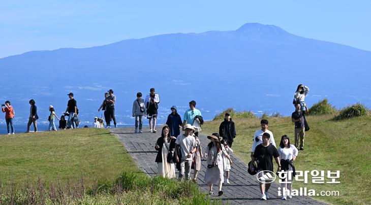추석 연휴인 2일 국토 최남단 마라도를 찾은 관광객들이 청명한 가을날씨속에 섬 정취를 만끽하고 있다. 강희만기자