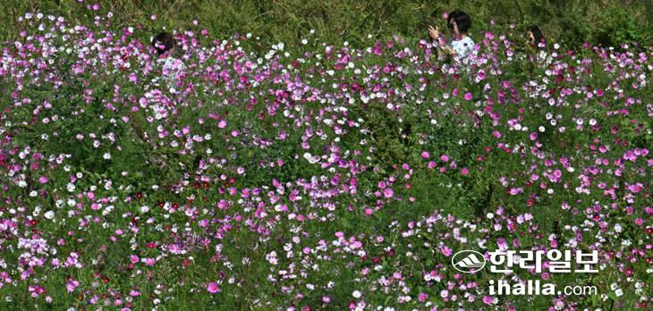 [한라일보] 10일 제주시 이호동 공한지에 코스모스가 활짝 피어 깊어가는 가을 정취를 한껏 느끼게 한다. 강희만기자