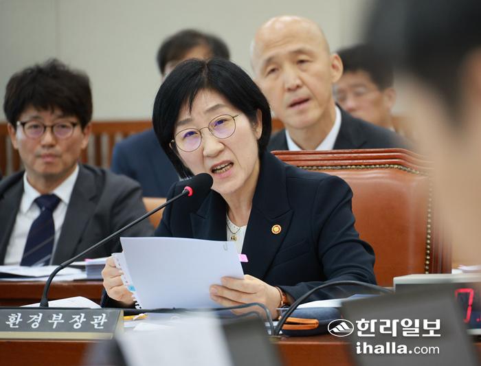 질의에 답변한는 한화진 환경부 장관. 연합뉴스