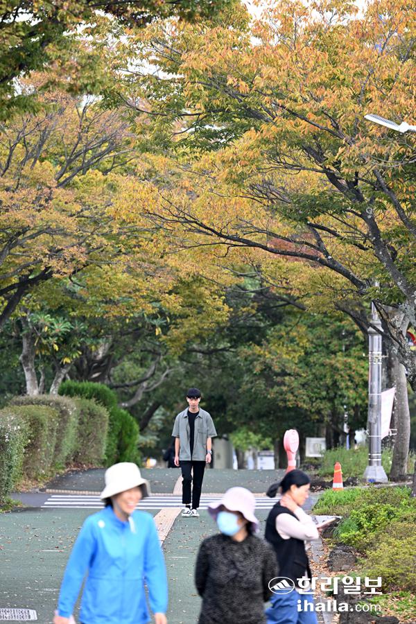 12일 제주대학교 교정 내 가로수에 울긋불긋 단풍이 들어 깊어가는 가을을 알리고 있다. 강희만기자