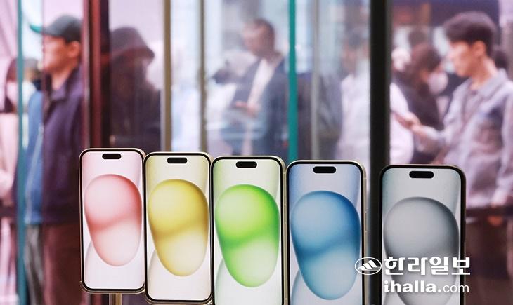 애플은 이날 한국에 플래그십 스마트폰 아이폰15 시리즈를 정식으로 출시했다.