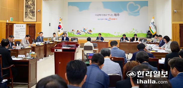 제주도의회 환경도시위원회가 16일 서귀포시청을 찾아 행정사무감사를 벌이고 있다. 서귀포시 제공
