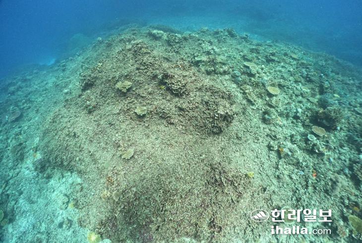 이곳의 대표 종이라 할 수 있는 사슴뿔 모양의 아크로포라(Acropora) 속의 종이 이루었던 산호 숲(큰 가지가 많은 산호가 얽혀 숲처럼 보여 이 글에서는 산호 숲이라 한다)이 죽어가고 있었고, 죽은 사체의 조각이나 가지들이 언덕을 이루어 황량한 풍경은 산호들의 공동묘지라 할 만했다. 산 산호가 사라진 곳에는 조류가 너덜너덜 엉겨 붙어 지저분해 보였고, 그 많던 물고기 떼들도 보이지 않았다. 산호초에 의존해서 살아가던 섬의 어민들과 섬의 주민들에게도 분명 큰 손해가 전이되었을 것이다.