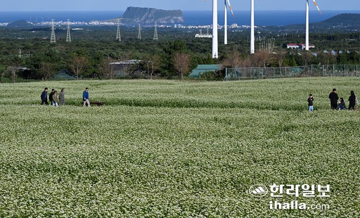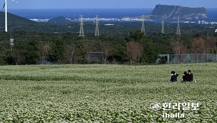 [한라일보] 22일 서귀포시 성산읍 수산리 제주자연생태공원에 메밀꽃이 만개해 오가는 이들의 시선을 사로잡고 있다. 강희만기자