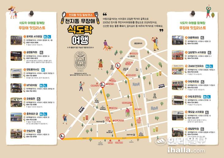 천지동에서 제주도관광약자접근성안내센터, 서귀포시장애인자립생활센터와 함께 만든 아랑조을거리 '무장애 식도락 여행' 지도. 천지동 제공