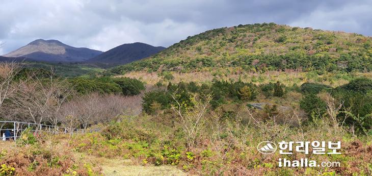 인정오름은 마을에서 볼 때 한라산을 가로막는 방향으로 놓여 있다. 사진 김찬수