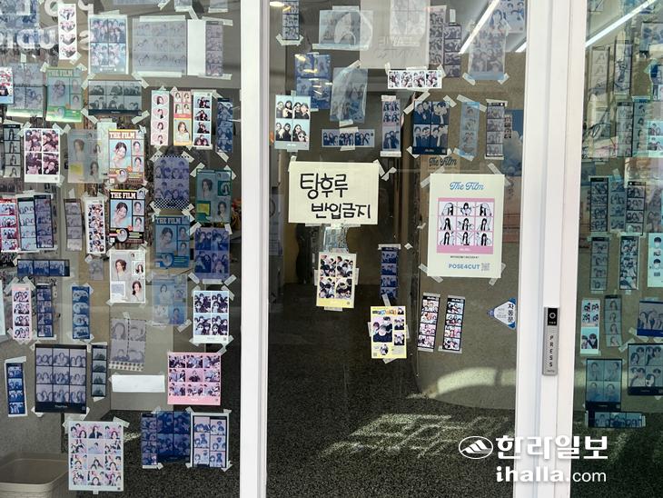 탕후루 반입이 안된다는 글귀가 붙여져 있는 제주시내 한 매장.