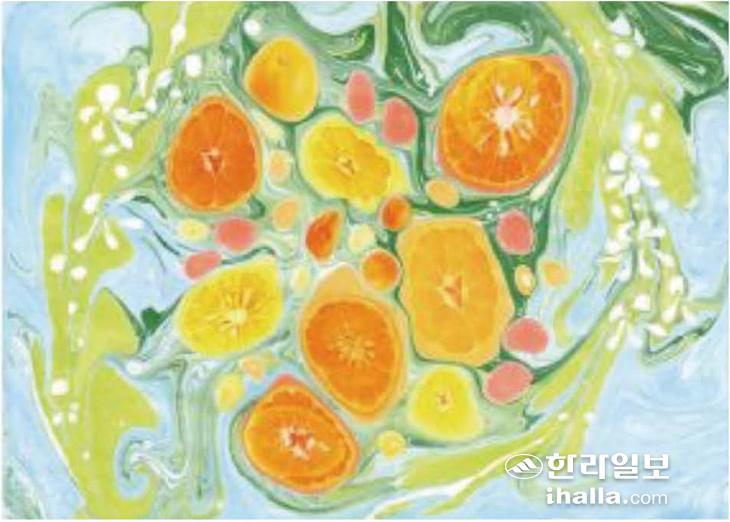 감귤박물관 '귤림추색 감귤아트전'에 참여한 홍송희의 '감귤의 계절'. 감귤박물관 제공