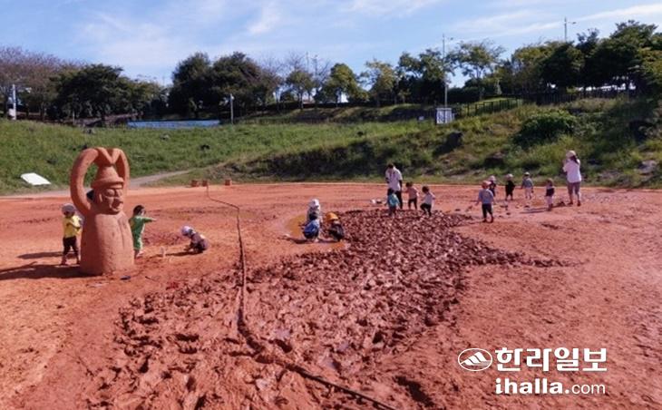 서귀포시 혁신도시 숨골공원에 조성된 황토 어싱 광장. 서귀포시 제공