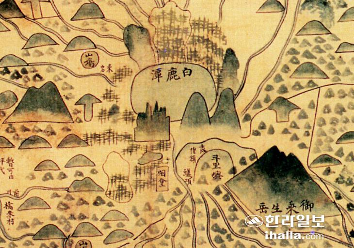 1750년쯤 제작한 '해동지도 제주삼현도'의 어승생오름. 다른 오름들과 방향이 다르다.