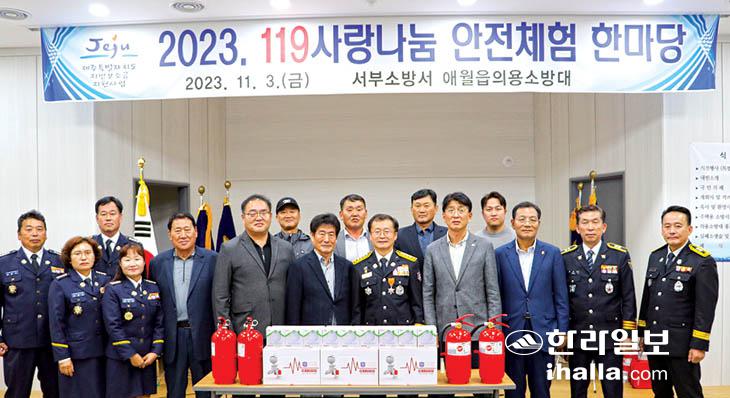 애월119센터(센터장 정경만)는 지난 3일 제주시 애월읍 납읍리사무소에서 주민 150명을 대상으로 지역 사회 안전 문화 정착을 위해 '119사랑 나눔 안전 체험 한마당' 행사를 개최했다.