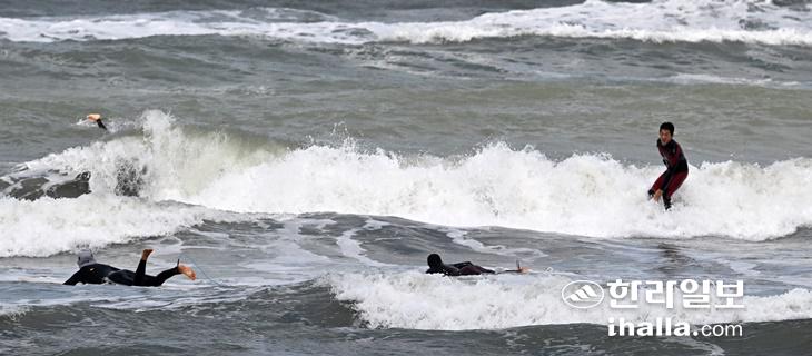 제주 찬바람에 잔뜩 움츠린 관광객들