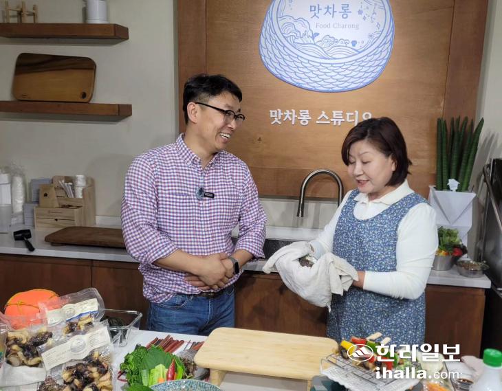금능맛차롱협동조합이 지난달 29일 맛차롱 스튜디오에서 진행한 뿔소라 판매 첫 인터넷 방송. 사진=금능맛차롱
