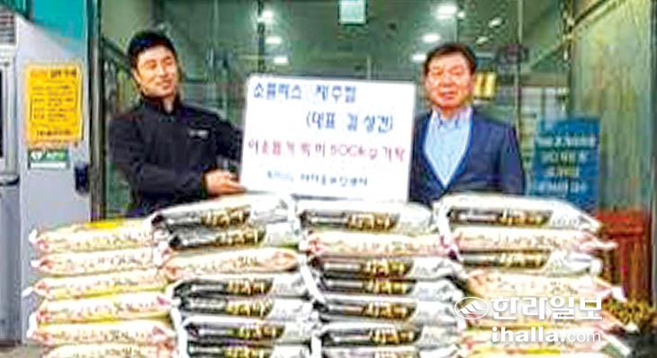 소플러스 제주점(대표 김성건)은 9일 사랑의 쌀 500㎏을 아라동주민센터(동장 고명선)에 기탁했다.