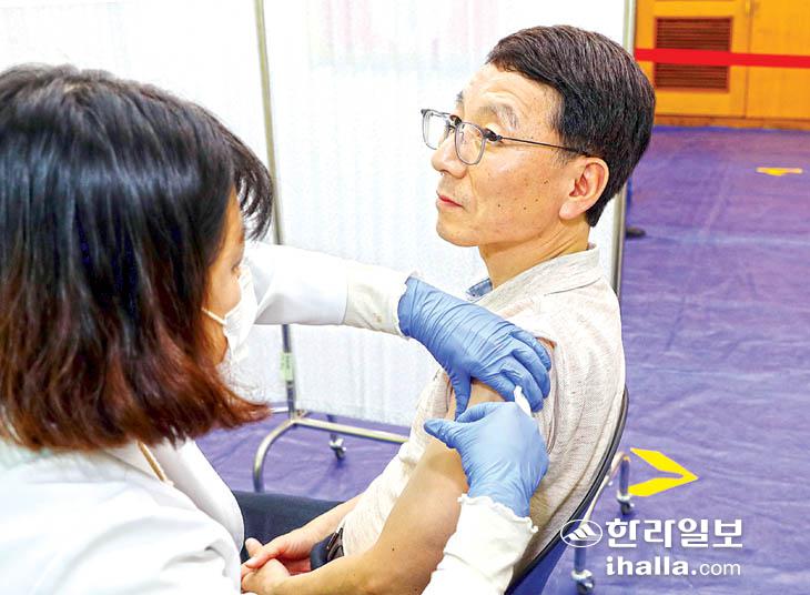이날 접종은 코로나19와 인플루엔자 백신 접종에 대한 도민의 관심을 모으고 가급적 이른 시일 내 접종 참여를 독려하고자 이뤄졌다. 제주도는 지난 10월 19일부터 65세 이상 어르신 등 고위험군의 접종을, 이달 1일부터는 12~64세 도민을 대상으로 시행하고 있다.