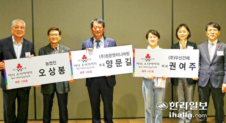 제주사회복지공동모금회(회장 강지언)는 지난 8일 호텔 난타 연회장에서 오라동 지역 농업인 오상봉씨, (주)청운엔지니어링 양문길 대표, (주)우신건재 권여주 이사의 아너 소사이어티 단체 가입식을 진행했다.