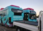 서귀포시 토평동 공영버스 차고지에 고장난 채 세워져 있는 '서귀포 시티투어' 전기버스. 한라일보 자료사진