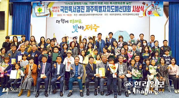 새마을문고제주특별자치도지부(회장 유철수)는 지난 10일 제주도청 대강당에서 제주특별자치도 김성중 행정부지사, 도교육청 오경규 교육국장, 제주특별자치도새마을회 이기창 회장, 새마을문고지도자 및 수상자 등 180명이 참석한 가운데 대통령기 제43회 국민독서경진제주특별자치도예선대회 시상식을 개최했다.