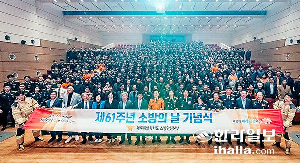 제주특별자치도 소방안전본부(본부장 김수환)는 13일 오후 3시 제주관광대학교 컨벤션홀에서 '제61주년 소방의 날 기념식'을 개최했다.