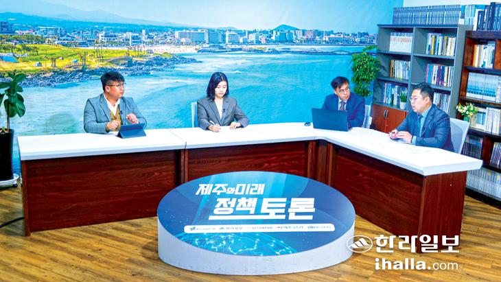 지난 6일 '청년취업, 활성화 방안은?'을 주제로 열린 한라일보·제주와미래연구원·KCTV·제주의소리·TBN 공동기획 토론회. 사진 왼쪽부터 박경호 제주도 청년정책조정위원회 위원, 신현정 제주평화인권연구소 왓 활동가, 송종훈 제주한라대 겸임교수, 한동수 제주도의회 의원.