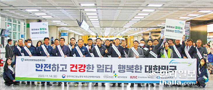고용노동부 광주지방고용노동청(청장 양정열), 안전보건공단 제주지역본부(본부장 심우섭), 한국공항공사 제주공항(제주공항장 손종하), 제주상공회의소(회장 양문석)는 14일 제주국제공항에서 기관 대표를 포함 20여 명이 참석한 가운데 4개 기관이 합동으로 안전 캠페인 및 공단·공사 양측의 안전점검을 실시했다.