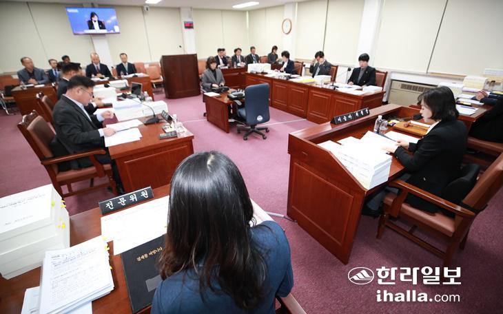 15일 제주도의회 문화관광체육위원회에서 2024년 행정시 문화관광체육국 예산안에 대한 심의를 하고 있다. 제주도의회 제공