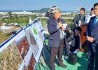오영훈 제주특별자치도지사가 15일 제주시 도련1동에서 '(가칭) 제주 화북2 공공주택지구' 개발 계획을 발표하고 관계자의 설명을 듣고 있다. 강희만기자