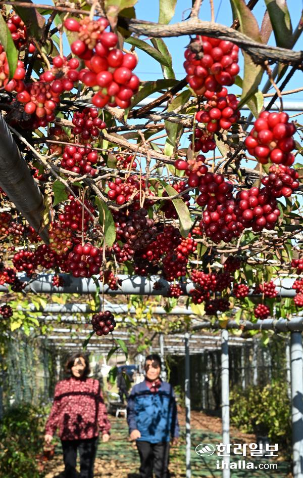 [한라일보] 15일 조천읍 선흘리 덩굴원에 남오미자가 주렁주렁 매달려 깊어가는 가을을 느끼게 한다. 강희만기자