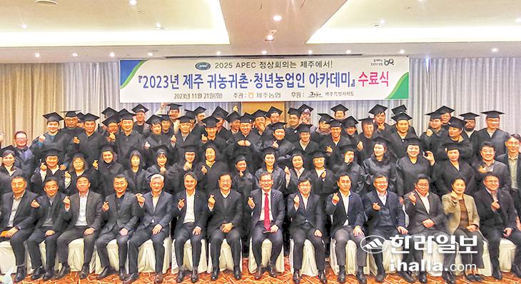제주특별자치도와 제주농협은 지난 21일 아스타호텔에서 교육생, 도청관계자 및 농협관계자 100여 명이 참석한 가운데 '2023년 제주 귀농귀촌 및 청년농업인 아카데미'수료식을 개최했다.