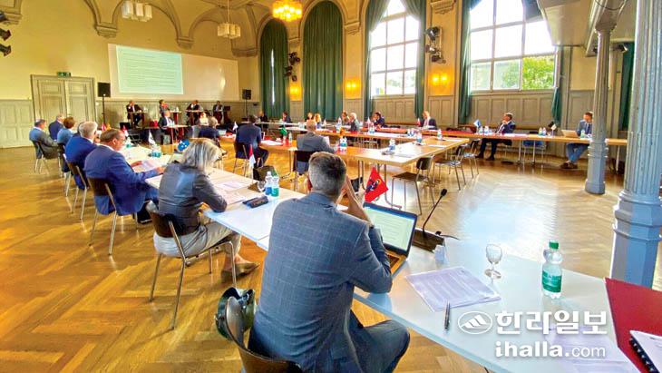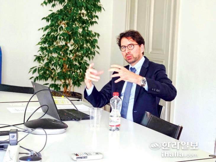 알렉산더 융고 분과장이 칸톤협의회의 기능과 역할에 대해서 설명하고 있다. 고대로기자