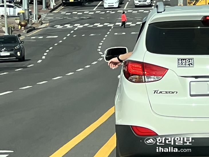 23일 오전 제주시 봉개동의 한 도로에서 운전자가 주행 중 창문을 열고 흡연을 하고 있다.