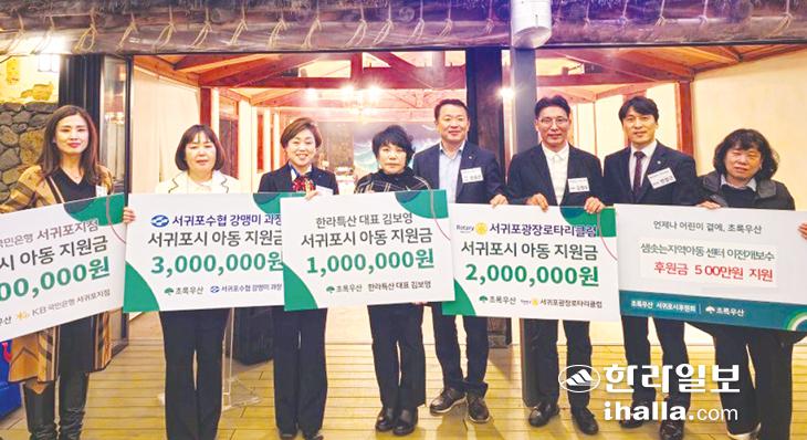 이번 기념식에는 서귀포시 아이들을 위한 후원금 전달식도 함께 이뤄졌다. 후원금은 한라특산 대표이자 서귀포시후원회 운영위원인 김보영 위원이 아동장학금 100만원, 국민은행 서귀포지점 200만원, 서귀포수협 강맹미 과장 300만원, 서귀포광장로타리클럽에서 200만원을 마련해 총 800만원이 전달됐다. 전달된 후원금은 샘솟는지역아동센터 이전에 따른 리모델링비를 비롯해 서귀포시내 취약계층 아동들에게 장학금 등으로 지원될 예정이다.