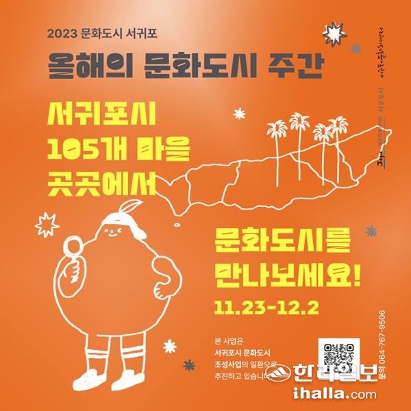 11월 23일부터 12월 2일까지는 '2023 문화도시 서귀포 올해의 문화도시 주간'. '105개 마을'로 상징되는 서귀포시 각지에서 문화도시를 만날 수 있다.