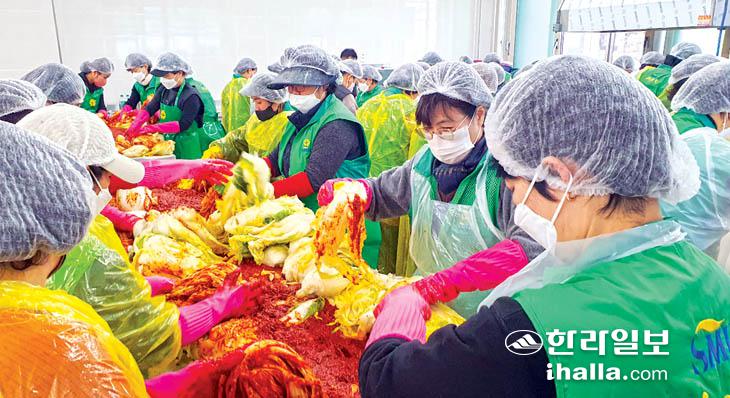 제주특별자치도와 제주도 새마을부녀회(회장 김정임)는 27일 서귀포시 상예1다목적회관에서 다문화가정 이주여성과 함께 국민대통합 김장행사를 개최했다.