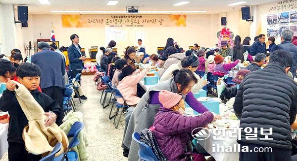 안덕면지역사회보장협의체(공동위원장 송창수·양상택)는 지난 24일 안덕생활체육관에서 복지대상자, 100·300 희망나눔 캠페인 참여자, 지역 기관·단체장, 협력기관 종사자 등 130여 명이 참여한 가운데 '혼디모영 나눔으로 지꺼진 날' 행사를 개최했다.