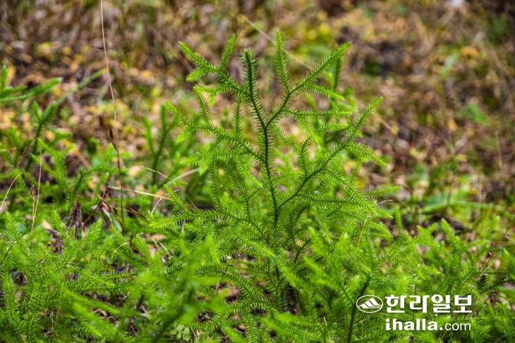 오름 정상에서 풍광에 취해 있던 참가자들은 아쉬움을 뒤로하고 참빗살나무와 인사하며 오름을 내려선다. 하산길은 다소 가파르지만 건너에 보이는 노로오름을 바라보며 조릿대 숲을 뚫고 걸음을 재촉한다. 빨간 열매를 단 화살나무가 반갑게 인사한다. 오름을 내려서면 삼나무숲을 만난다. 노로오름과 그 주변을 온통 덮고 있는 삼나무숲은 한라산둘레길 천아숲길이다. 숲길에는 소나무잎을 닮은 석송이 한창이다. 천아숲길을 따라가다 방향을 돌려 광령천 변의 숲으로 들어섰다.